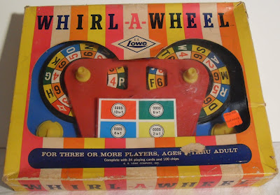 A colorful and favored gem from my collection. A 1960's E.S. Lowe Whirl-A-Wheel game.